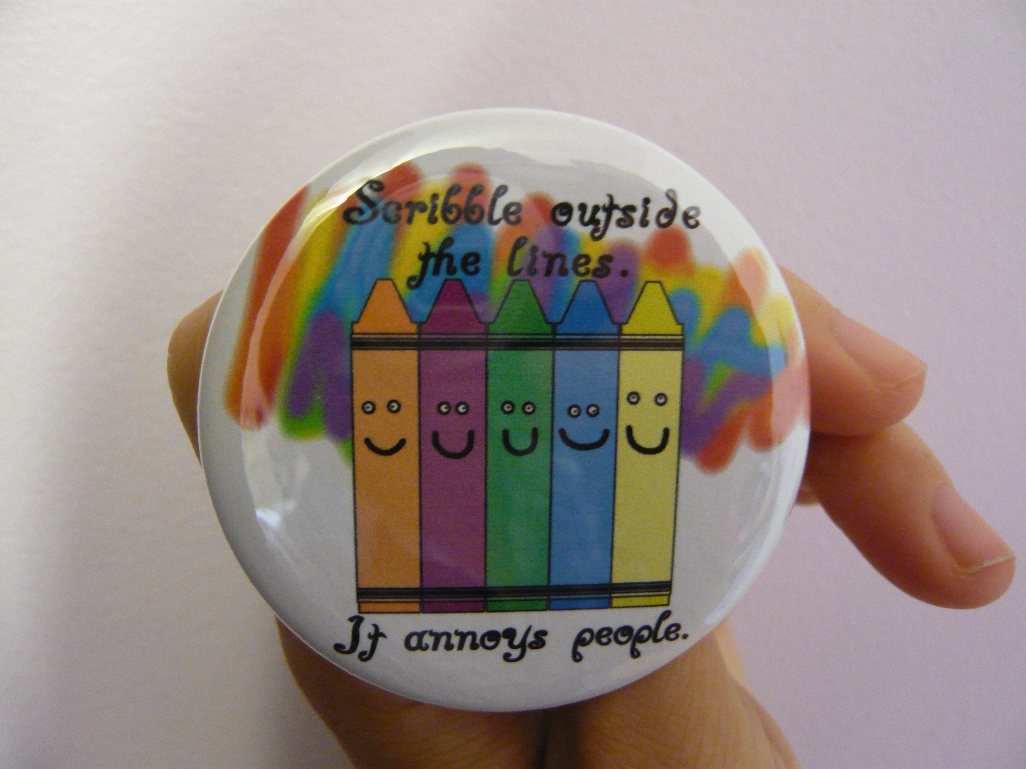 New Button: Scribblings September 29, 2010Funnyannoy, colors, colours, crayons, Pretty Buttoner, scribble, scribblingsMiki Tai Scribble outside the lines… It annoys people. Pretty Buttoner: Scribblings